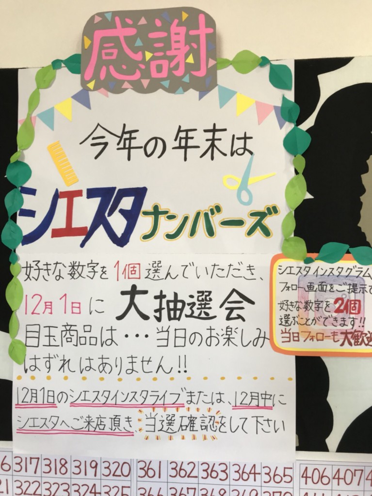 年末企画 シエスタナンバーズ 新潟市西蒲区巻hair of SIESTAシエスタ
